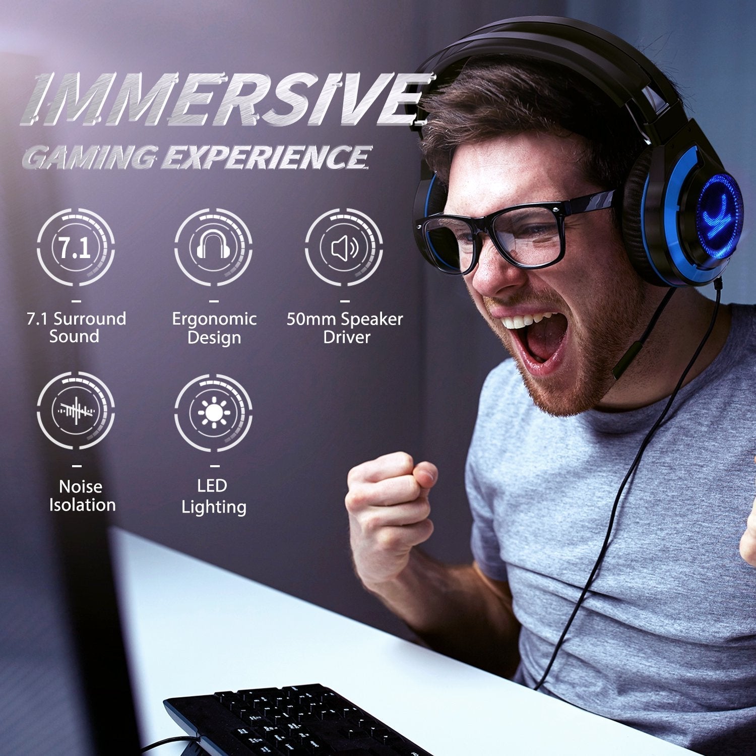 Gaming Headset, VANKYO CM7000 Pro PS4 Headset with 7.1 Surround Sound Stereo, Over Ear Gaming Headphones with Noise Canceling Mic & 3.5mm Audio/Mic Adapter for PC, PS5, Xbox One, Nintendo Switch